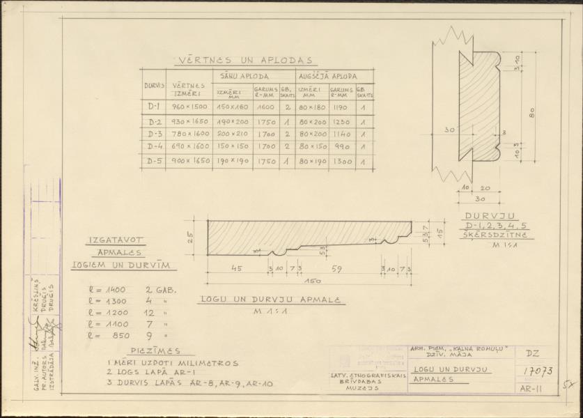 Latvijas etnogrāfiskais brīvdabas muzejs celtņu komplekss. Kalna Romuļu sādžas dzīvojamā māja. Logu un durvju apmales ( Rīga. Bonaventuras iela 10.)