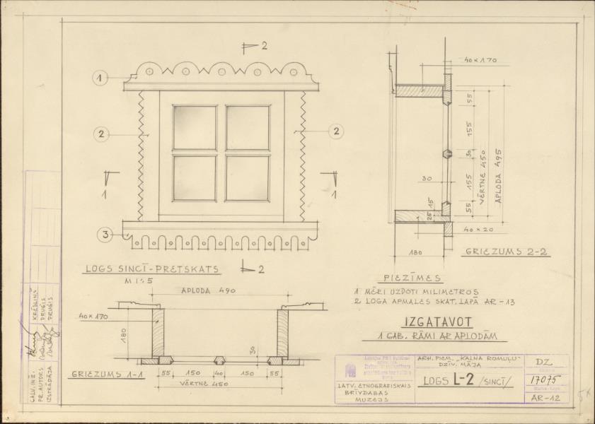 Latvijas etnogrāfiskais brīvdabas muzejs celtņu komplekss. Kalna Romuļu sādžas dzīvojamā māja. Logs ( Rīga. Bonaventuras iela 10.)