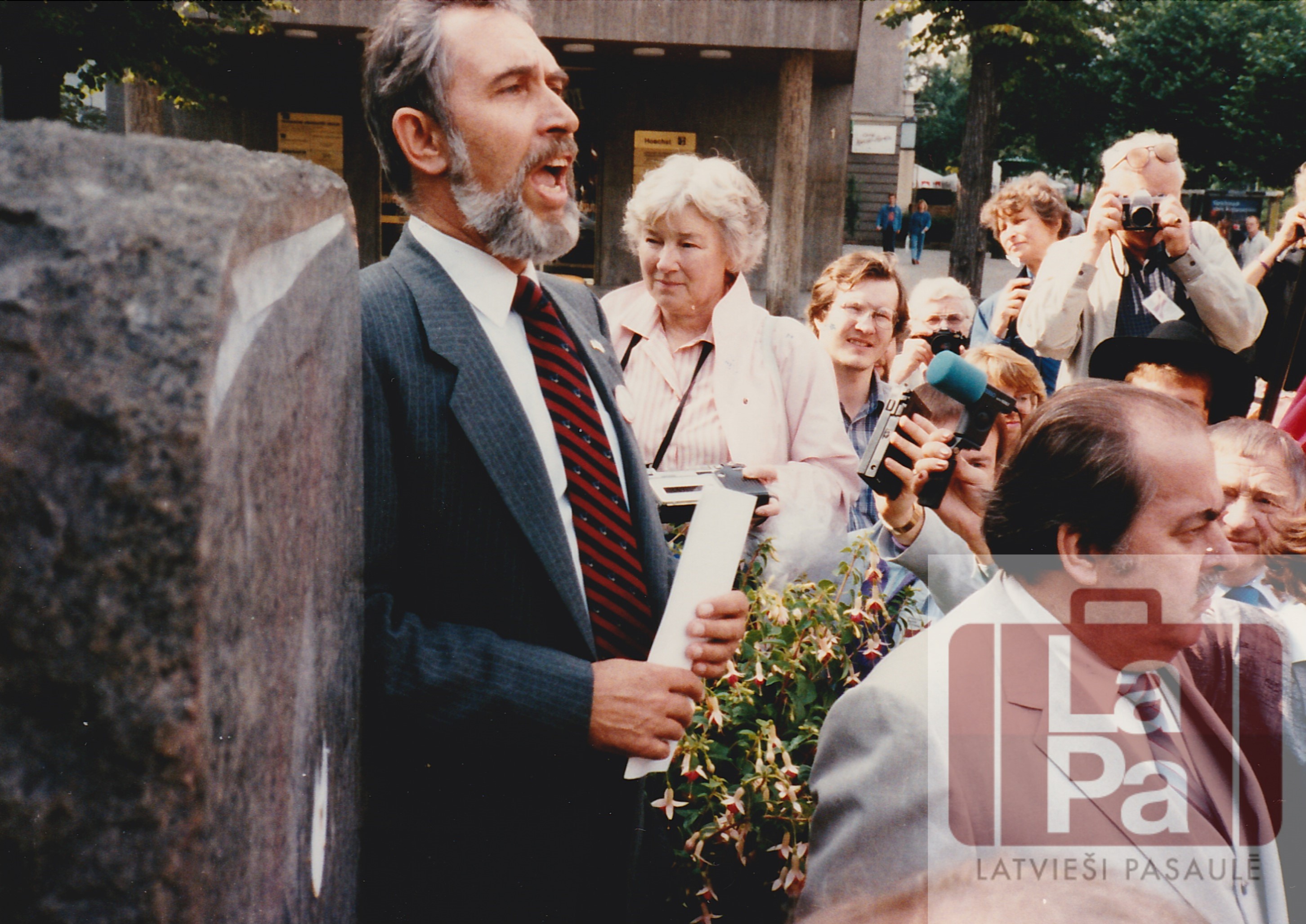 Oļģerts Pavlovskis uzrunā demonstrantus Rietumberlīnē
