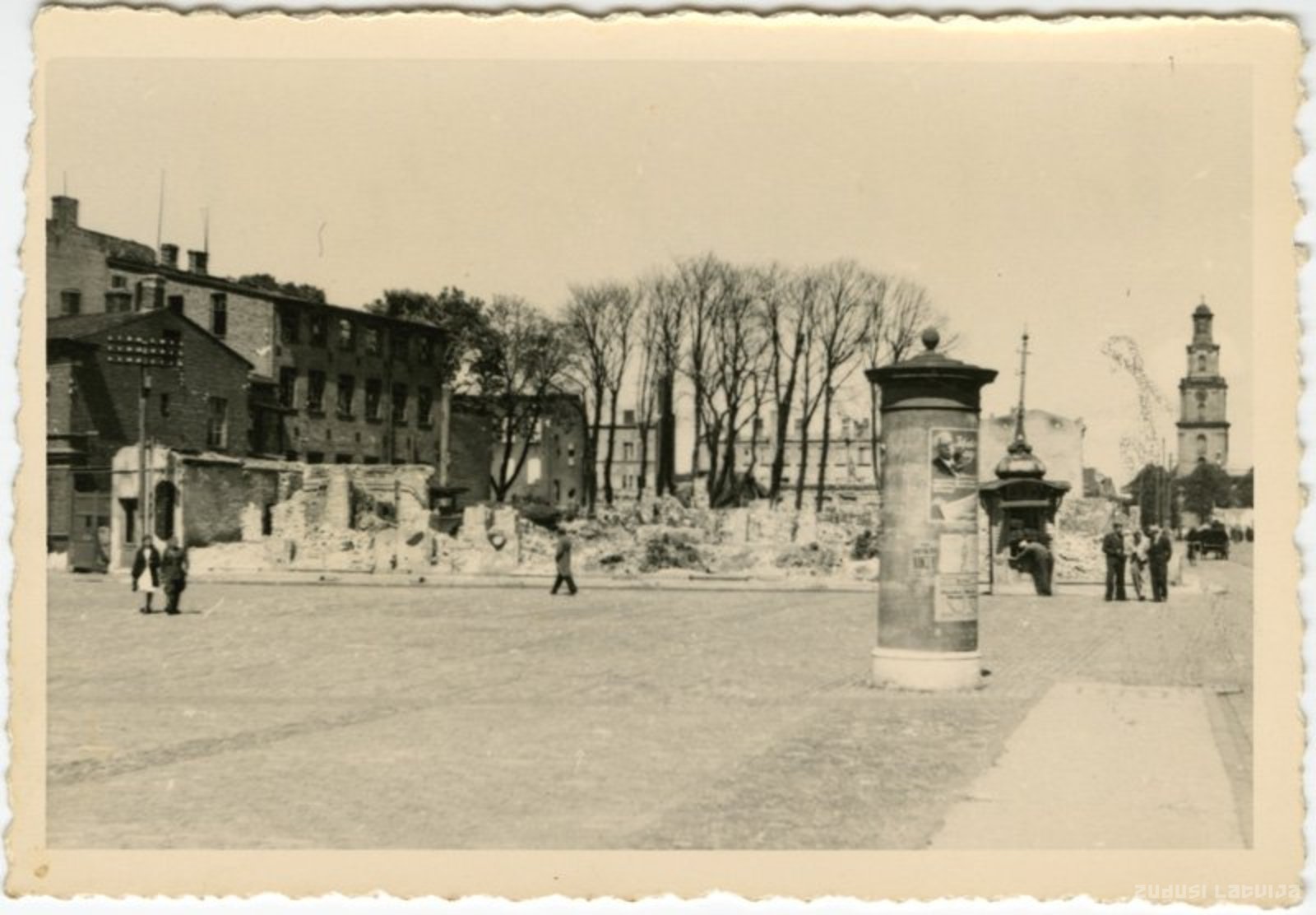 1941. gadā junija beigās vācu karaspēks nonāca Liepājas vēsturiskjā centrā. Kara pirmie postījumi ir plaši: 117 ēkas sagrautas pilnībā, 450 – daļēji bojātas. Lielākie postījumi ir Vītolu, Graudu, Lielās ielas, Rožu laukuma un ostas apkārtnē. 1944. gada oktobra sākumā Sarkanajai armijai izdodas pārtraukt sauszemes sakarus ar Kurzemi. Vācieši aplenkto Kurzemes daļu nosauc par Kurzemes cietoksni. Šeit atradās apmēram 200 000 vācu un latviešu kareivju un ap pusmiljons iedzīvotāju, ieskaitot visus bēgļus. Kurzemes cīņas turpinās septiņus mēnešus. Oktobrī atmosfēra Liepājā līdzinās haosam: kilometriem garas bēgļu rindas. Pilsēta tiek sistemātiski un nežēlīgi bombardēta. 1945. 9. maijs. Ielās sarkanarmieši, arī vācu karavīri mazos pulciņos bez ieročiem. Pulksten 14 pa radio atskan : “Padomju Latvija brīva. Liepāja karā tika nežēlīgi izpostīta