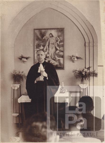 Luterāņu mācītājs Jēkabs Mekšs notur dievkalpojumu