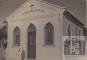 Nezināms vīrietis pie vecās luterāņu baznīcas Novaodesā (Brazīlija). Otrā pusē rokrakstā: Pirma luteraņu baznica Nova Odessa.