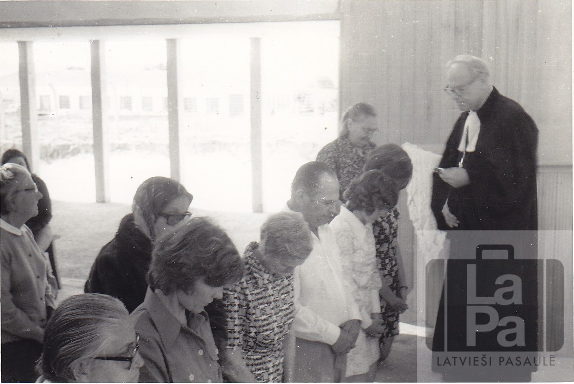 Dievgaldnieki un mācītājs Jēkabs Mekšs Novaodesas (Brazīlija) luterāņu baznīcā.