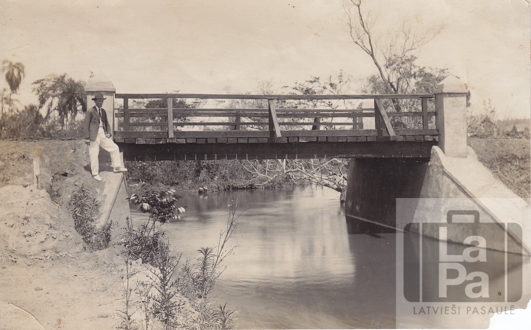 Kolonists luterānis Žanis Kūdriņš pie tilta Novaodesā 1920. gadā.