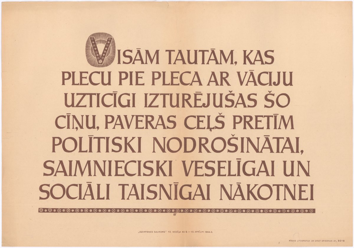 Visām tautām, kas plecu pie pleca ar Vāciju uzticīgi izturējušas šo cīņu, paveras ceļš pretīm politiski nodrošinātai, saimnieciski veselīgai un sociāli taisnīgai nākotnei [attēls] / mākslinieks nezināms