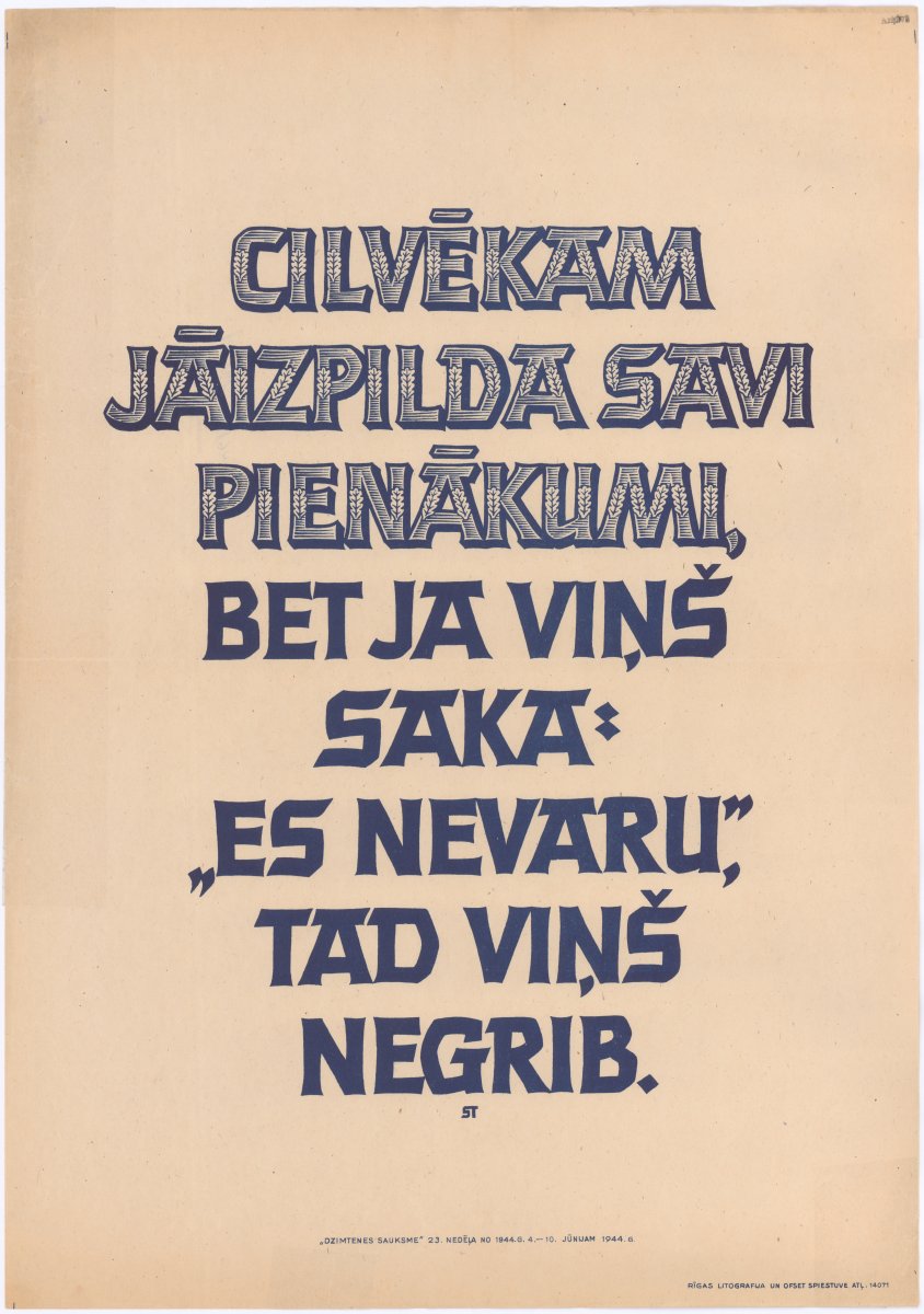 Cilvēkam jāizpilda savi pienākumi, bet ja viņš saka: "es nevaru", tad viņš negrib [attēls] / mākslinieks nezināms