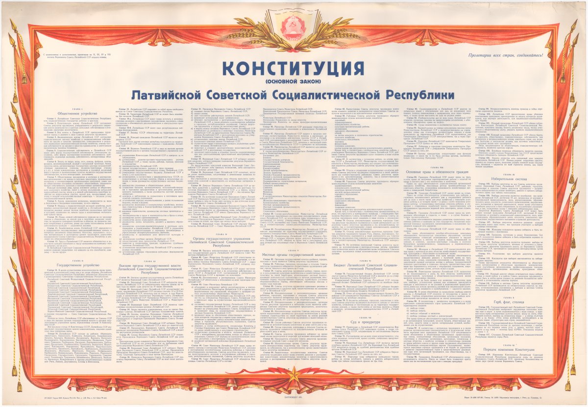 Конституция (основной закон) Латвийской Советской Социалистической Республики [attēls]. С изменениями и дополнениями, принятыми на II, III, IV и VII сесиях Верховного Совета Латвийской ССР второго созыва / mākslinieks nezināms