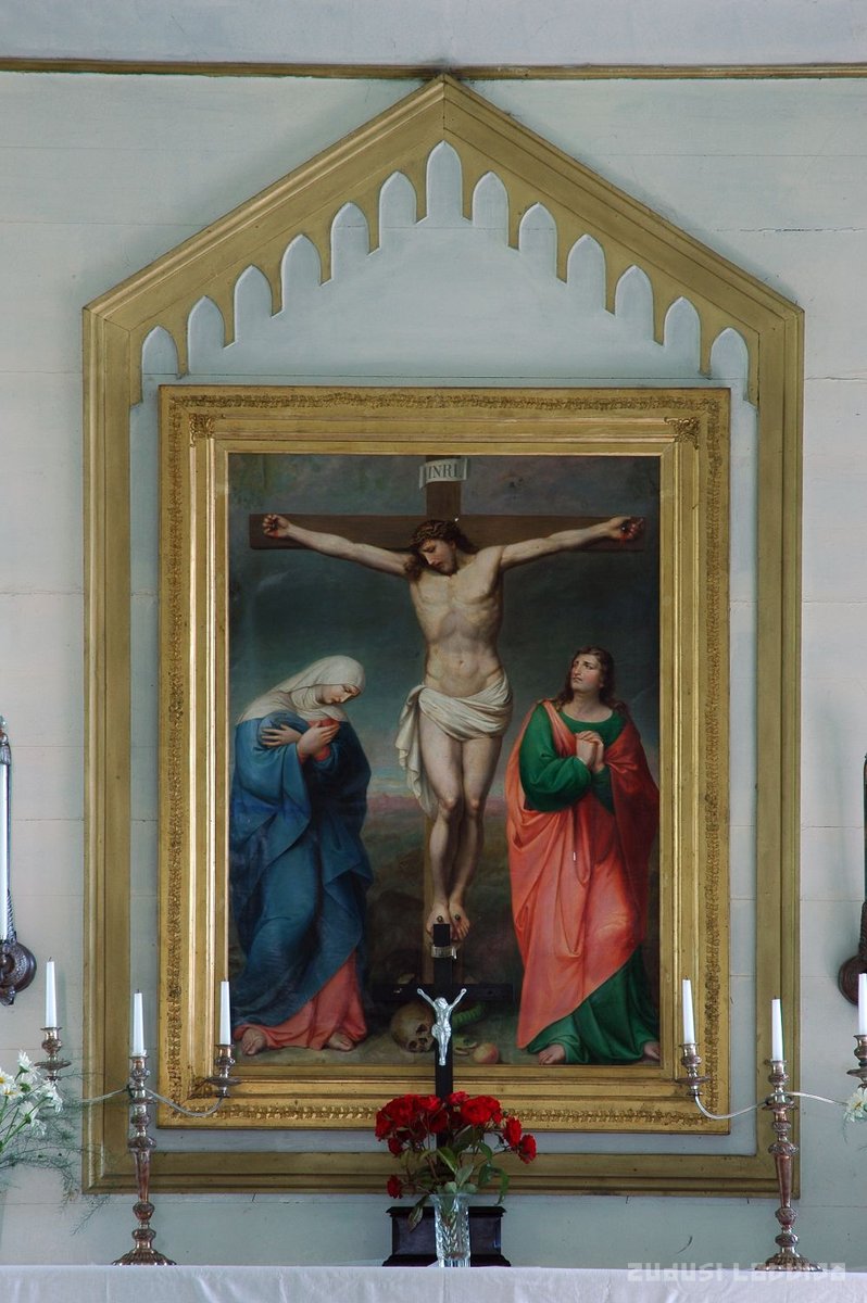 Bārbeles luterāņu baznīca celta 1883. gadā. Altārglezna „Kristus pie krusta”, autors L. De Mars, 1872. gads