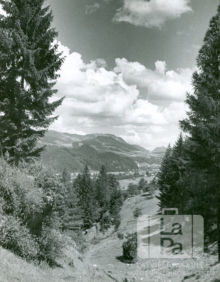Apkārtnes skats no Sidrabenes novada skautu nometnes Oberaudorfā (amerikāņu zonā) netālu no Austrijas robežas no 1949. gada 11. līdz 24. jūlijam. Nometnē pulcējās latviešu skauti (roveri) no bēgļu nometnēm Minhenes apkārtnē.
