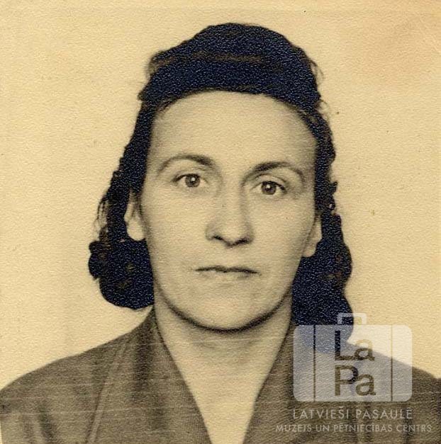 Irmas Sebres portrets "zaļajai kartei" izbraukšanai uz ASV Brēmerhāfenā (amerikāņu zonā).