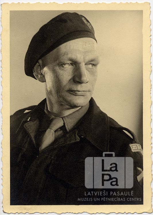 Nezināma vīrieša portrets. Ģērbies "melno vienības" uniformā, angļu zona.