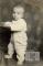 Andrejs Sebris kā mazs zēns angļu zonā ap 1948. gadu. Fonā sega ar ornamentiem.
