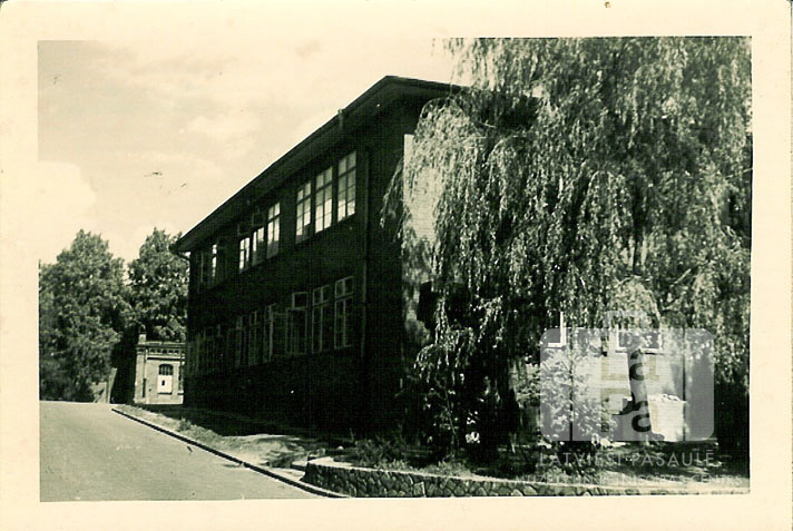 Pamatskolas un ģimnāzijas skolu ēka Iceho nometnē (angļu zonā).