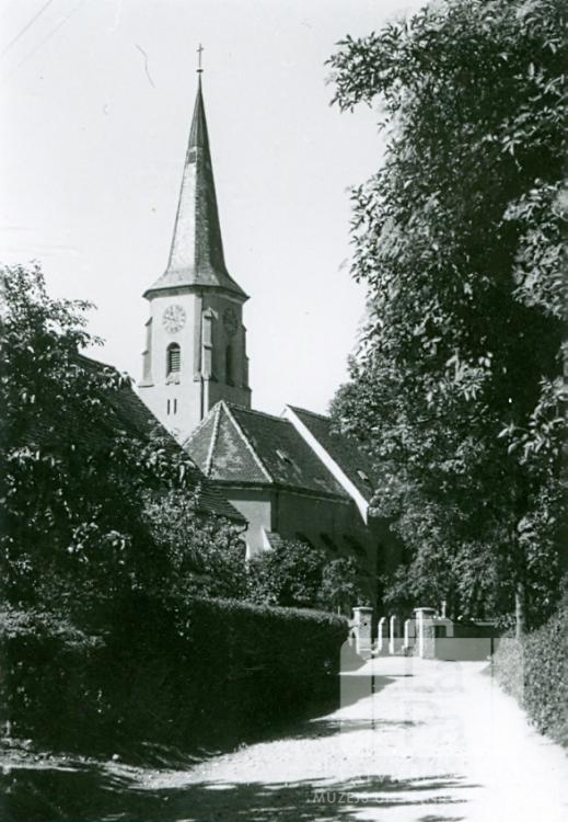 Baznīca Memmingenē (amerikāņu zonā) 1949. gada vasarā. Par šo gadījumu Ārija Breikša (dz. Brekte) atceras: "Memmingenes baznīca, kur latviešu mācītājs Zīrāks noturēja latviešu dievkalpojumus."