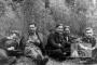 Atpūtas brīdis, kad Pērses 5. skautu vienība gāja ekskursijas sirojumā pie Sidrabenes 33. skautu vienības Altgarges nometnē Elbas upes krastā (angļu zonā). No kreisās: rovers Artūrs Neboiss, vadītājs Mārtiņš Vētra, roveri Gunārs Pērkons, Gunārs Fogels un Roberts Krims. Foto autors: ? Neboiss.
