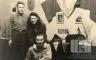 Trīs cilvēki Rīgas 55. skautu vienības izstādē Baltijas Universitātē Pinnebergā (angļu zonā). Aizmugurē uz sienas karogi un fotoattēli, uz galda izstādes priekšmeti. No kreisās: vadītāji nezināms, Dz. Gulbe un A. Spīgulis. Foto autors: ? Neboiss.
