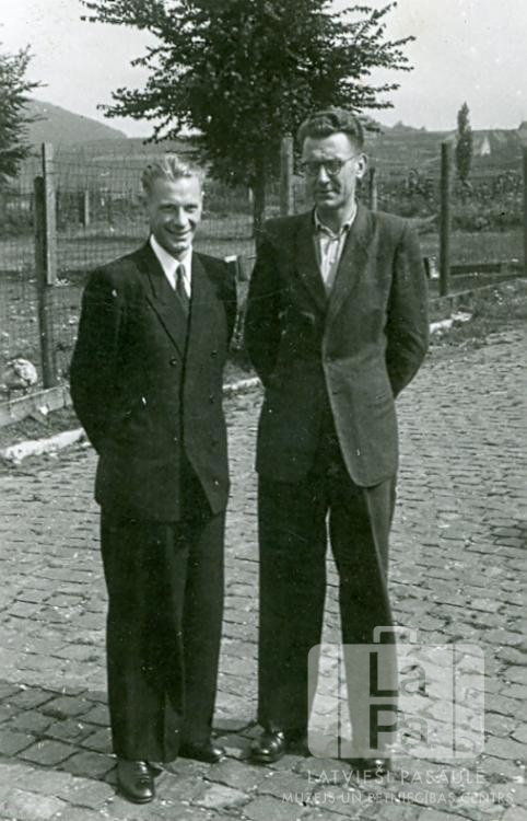 Divi draugi Fuldas nometnē (amerikāņu zonā). No kreisās: Arturs Neparts un Kārlis Mētra.