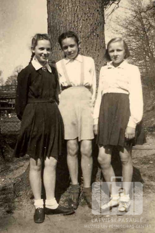 Trīs meitenes svētdienas pastaigā parkā Iceho nometnes tuvumā (angļu zonā). No kreisās: Ranta Tone, Austra Ģiga un Anna Dabare.