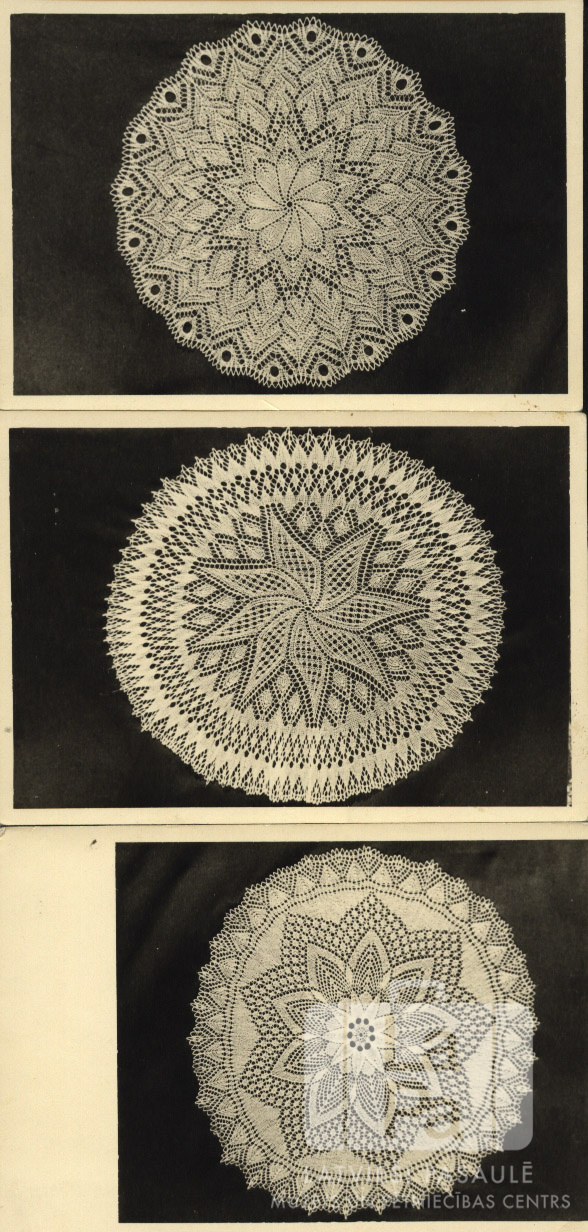 Trīs tamborētas sedziņas ACCU nometnē Hannoverē (angļu zonā), 27.06.1947.–17.04.1950. Par šo gadījumu Astra Zemzara (dz. Pētersone) atceras: "Lidijas Pētersones ACCU nometnē darinātas sedziņas, kuras vācietēm ļoti patika."