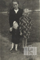Pētersonu meitas ar tanti ACCU nometnē Hannoverē (angļu zonā). Priekšā, no kreisās: Māra Pētersone, Astra Pētersone (pr. Zemzara). Aizmugurē Alma Pētersone Tāmniece. Par šo gadījumu Astra Zemzara (dz. Pētersone) atceras: "Skolotāja Alma Pētersone Tāmniece, Artura Pētersona māsa, Astras krustmāte, meklējot vīru, atgriezās Latvijā."