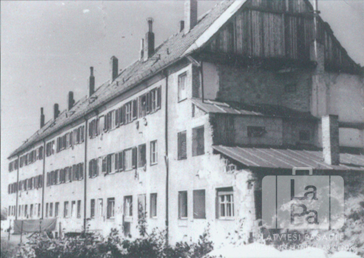 Blokmāju rinda ar koku aleju Hohfeldes nometnē Augsburgā (amerikāņu zonā). Par šo gadījumu Ausma Wilson (dz. Tuims) atceras: "Bloku mājas bija bijušās "Luftwaffe" ģimeņu dzīvokļi. Katra dzīvokļa istaba bija norādīta vienai ģimenei. Virtuve un vannas istaba bija kopēja ar citām ģimenēm."