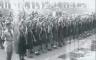 Gaidas un skauti formās ar paceltu labo roku stāv rindā nodod zvērestu(?).