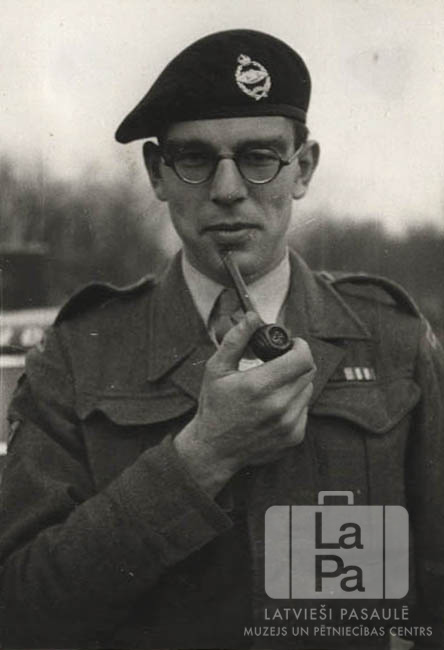 Angļu virsnieks no militārās pārvaldes formastērpā ar pīpi ACCU nometnē Hannoverē (angļu zonā).