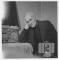 Skolotājs Eduards Bištēviņš klausās radio Haunštetenes nometnē Augsburgā (amerikāņu zonā).