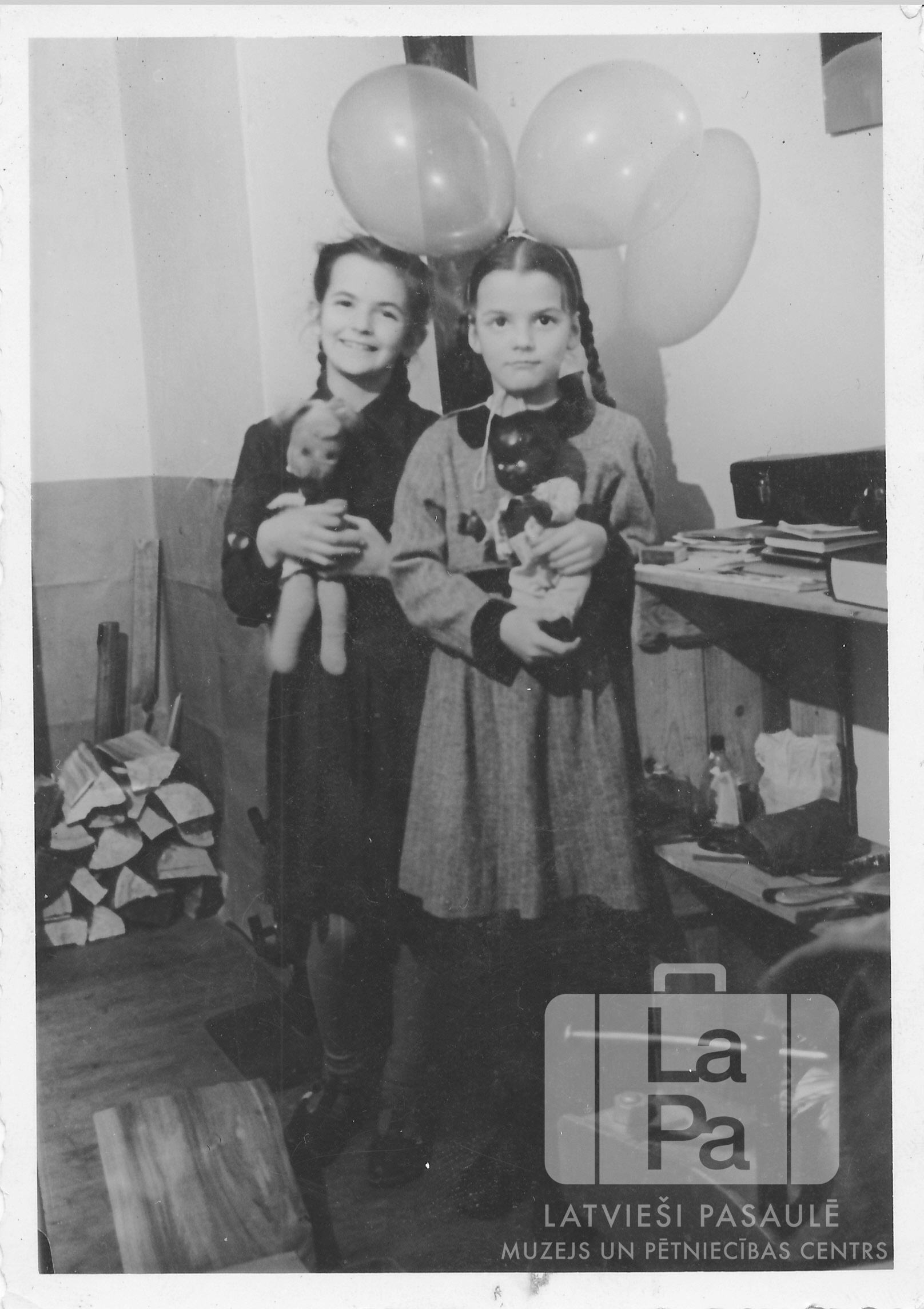 Māsas ar baloniem un lellēm