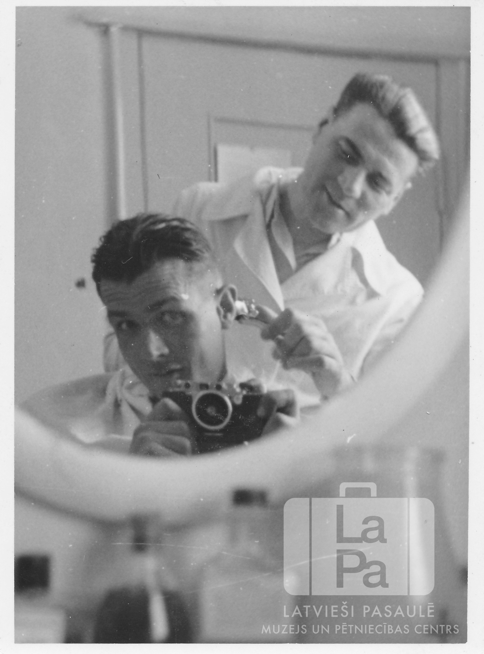Par šo gadījumu Dagnija Neimane atceras: "Mans onkulis Hermanis Bištēviņš fotografēja visus un visu savā kazarmas "melno” dzīvē Viestura rotā Šutgartē. Šeit pat savu matu griešanu, redzamu spogulī."