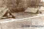 Divas teltis, kreisajā durvīs stāv puisis, apakšējā labajā stūrī ir rakstīts ar roku: "Salem nometnē"