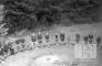 Skauti formastērpos no Vēdeles nometnes (angļu zonā) stāv puslokā skautu nometnē Salemā 1946. gada vasarā. Aiz skautiem ir redzamas egles. Uz fotogrāfijas labajā pusē apakšā rokrakstā rakstīts: "Pirms ēšanas".