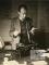 Atis Mucnieks stāv Pegnicas nometnes (amerikāņu zonā) darba kabinetā pie sava rakstāmgalda. Viņam priekšā uz galda stāv rakstāmmašīna, dokumenti un rakstāmpiederumi.