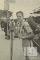 Ervīns Miezītis skautu formastērpā uz vilciena platformas amerikāņu zonā. Uz pleciem viņam ir mugursoma; kreisajā rokā viņš tur garu nūju. Fonā uz perona ir redzami cilvēki.