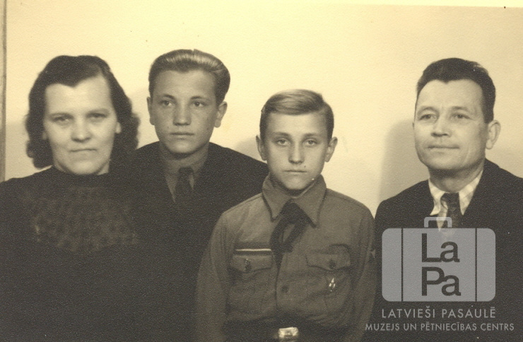 Punduru ģimenes portrets Fišbahā (amerikāņu zonā). No kreisās: Lidija Pundurs, Vitālijs Pundurs, Ēvalds Pundurs un ? Pundurs.