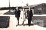 Saukantu ģimene pastaigā pa Valkas nometni Nirnbergā (amerikāņu zonā) 1946. gada beigās. Vīrieši ģērbušies uzvalkos. Fonā kreisajā pusē ir ceļš, labajā pusē vienstāvu baraka. No kreisās: Jānis Saukants, Lidija Saukants un Harijs Saukants.