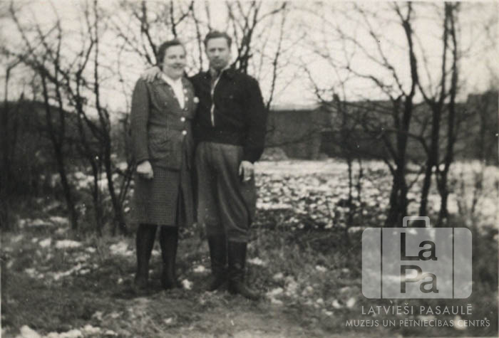 Fotogrāfijas dāvinātāja rakstītais atmiņu stāsts par bēgļu gaitām un bēgļu nometnēm: "1944. g. 28. jūlija rītā atstājām Bausku. 6.00 mūs pamodināja saucieni, ka Jelgava deg un krievi tuvojas. Tika padota vaļēja mašīna, un mēs braucām ar to līdz Iecavai. Bijām uzvilkuši ziemas mēteļus, sasvieduši vanniņā kaut kādas lietas. Iecavā vācu karavīri apturēja mašīnu un lika izkāpt, jo mašīnu vajagot armijas vajadzībām. Sākās panika. Tajā brīdī nāca nākamā mašīna, un karavīri aizskrēja pie tās. Šoferis nez kāpēc vērsās pie manis, vaicājot, ko darīt, un es teicu: "Brauciet!” Aizsedzu savus bērnus aiz bailēm, ka uz mums šaus, un mēs aizbraucām pa blakus ceļu. Vēl no Latvijas atceros epizodi, kad Airītēs, kur bija vācu štābs, lauzītā valodā prasīju pēc palīdzības, jo pie Priekules jau tuvojās Padomju armija. Man apsolīja pajūgu uz Liepāju. Piepeši viens vācu virsnieks sāka runāt latviski. Viņš bija, neatminu vairs, vai nu no Līveniem vai Medemiem. Viņš teica, salīdzinot padomju un vācu režīmus: "Tie paši vēži, tikai citā kulītē. Tomēr Vācijā jums būs drošāk.” 1944. gada 20. oktobrī izbraucām no Liepājas. Brauciens bija ar kuģi “Bukareste” no Liepājas uz Vēzeli Reinas krastā. Mūs ievietoja armijas barakās. Nāca amerikāņu uzlidojumi, un mums lika braukt tālāk. Bijām lielāka latviešu grupa, kas ar agronoma Blūmentāla padomu devās uz Meklenburgu. Cita latviešu grupa aizbrauca uz Drēzdeni. Mēs braucām cauri Berlīnei. Berlīnē palikām uz vienu nakti apakšzemes patversmēs. Otru nakti mums neļāva tur palikt, un tas bija liktenīgi, jo to sektoru sabumboja. No Berlīnes uz Meklenburgu pie Neištērlicas. Bijām lielā vācu muižā apmēram 30 cilvēki. Dzīvojām barakās, guļasvietas uz salmiem. Vīrieši strādāja lauku darbos. Tuvojās kara josla. Ar pajūgu atkal bēgām tālāk uz Šverīnu. Ceļā bija drausmīgi skati. Sabumboti ceļi, pajūgi, pa ceļiem tika dzīti koncentrācijas nometņu ieslodzītie. Bija šausmīgi skatīties, kā viņi no beigtajiem zirgiem centās plēst gaļu. Bet sargi ar pātagām dzina viņus tālāk. Šī briesmīgā aina ir palikusi manā atmiņā. Šverīnā mana ģimene apmetās ķieģeļu ceplī. Pēc laiciņa mūs atkal sāka formēt grupās un deva mašīnas, lai pārvietotu tālāk. Tas bija ceļš uz Švarcenbeku. Švarcenbekā vienu brīdi uzturējāmies lidmašīnu fabrikā. Gulējām starp visādām iekārtām. Kad blakus fabrikai atbrīvojās strādnieku barakas, tad tur arī tika ievietoti bēgļi. Nometnē bija apmēram 1000 bēgļu. Pirmais komandants bija Veilands. Švarcenbekā tikām 1945. gada pavasarī. Mūsu ģimenē bez manis vēl bija vīrs Genriks Rītiņš, divi mūsu dēli Juris un Jānis un vīramāte Anna Rītiņš. Vīrs Genriks pēc Bauskas krišanas pēdējā brīdī novilka formastērpu un kā zemnieks paguva mums pievienoties. Švarcenbekā tika sadalītas barakas, un mūsējā dzīvoja ģimenes ar bērniem. Bijām 4. barakā, kurā dzīvoja 20 ģimenes. Vīrs bija barakas vecākais. Cīnījāmies ar blaktīm, bet bijām drošībā. Attīstījās sabiedriskā dzīve – koris, teātris, skola, bērnu nodarbības, draudze. Nometnē bija mācītāji Sīpols un Līventāls. Vācijā, Hamburgā, piedzima mūsu trešais dēls Andrejs. Paliku Švarcenbekā līdz 1948. gada septembrim. Vīrs darbos uz Angliju aizbrauca jau 1947. gada maijā. Viņš vispirms tika lauksaimniecības darbos, bet, tā kā ģimene bija liela, tad pārgāja uz raktuvēm, jo tur varēja vairāk nopelnīt. Pēc Švarcenbekas kādu laiku bijām Ventorfas caurlaides nometnē. Mums, visai ģimenei, bija ļoti grūti tikt uz Angliju, jo vīramāte vienmēr bija slima. Es kategoriski atteicos viņu atstāt. Un tā gadu un piecus mēnešus ar bērniem paliku vēl Vācijā. Ceturtais dēls Mārtiņš piedzima Anglijā. Mēs izvēlējāmies Angliju ar domu, ka tas būs tuvāk, kad mūsu lielajai ģimenei būs jābrauc atpakaļ uz Latviju."