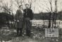 Prīdānu pāris klajuma malā Švarcenbekā (angļu zonā). Gan klajumā aiz krūmāju rindas, gan arī pie pāra uz zemes ir sniegs.