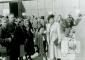 Cilvēku grupa pie lielas ēkas