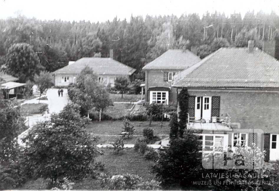 Nometnes skats Ausmas nometnē Kleinkecā (amerikāņu zonā). Trīs dzīvojamās mājas, tām priekšā apstādījumi, kreisajā pusē iela, pa kuru pastaigājas divi gājēji. Fonā mežs. Par šo gadījumu Ingrīda Irani (dz. Lemberga) atceras: "Kleinkecas DP nometnē bez barakām arī bija šīs dzīvojamās ēkas sauktas "Mūnas” ēkas, kur dzīvoja nometnes vadība un ģimenes ar maziem bērniņiem."