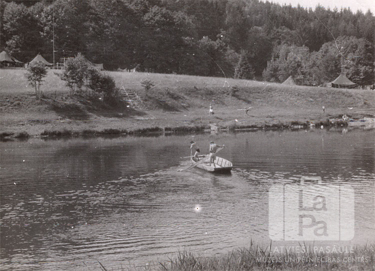 Vasaras nometne upes krastā netālu no Rēgensburgas (amerikāņu zonā) ap 1948. gadu. Divi zēni laivā upes vidū velk tīklu ārā no ūdens, gar upes pretējo krastu pastaigājas cilvēki. Augstāk, nost no krasta, ir neliela pļava ar vairākām uzslietām teltīm abās pļavas malās. Fonā mežs.