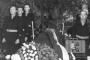 Kapteiņa ? Kauliņa bēru goda sardze Lībekā (angļu zonā). Ar Latvijas valsts karogu pārklātam zārkam abās pusēs stāv trīs vīri (katrā pusē) melnos formastērpos. Abās zārka pusēs deg divas gaišas sveces, priekšplānā ir salikti ziedi. Telpa ir dekorēta ar augiem. Goda sardzē redzāmi: ? Krasts, Kārlis Šics, ? Rekelis un ? Augstkalns.