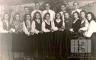 Kārļa Skalbes ģimnāzijas runas koris Latvijas valsts svētkos Antverpes nometnē Flensburgā (angļu zonā). Jaunietes ir ģērbušies tautastērpos, puišiem ir gaiši krekli ar prievītēm. Fonā egļu zari. Pirmajā rindā, no kreisās: sestā Inese šulca, septītā Aina Poriete un devītā Maija Noriņa. Otrajā rindā, no kreisās: trešais Juris Orle, piektais Edvīns Hincenbergs un sestais Jānis Krūmiņš.
