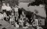 Mazskautu grupa ar vadītāju un draugiem stāvā Innas upes krastā pie Mīldorfas (amerikāņu zonā). Fonā mežiem apaugusi nogāze un Innas upe. Grupas vidū ir redzams Uldis Trēgers (vadītājs, rovers; ar cepuri galvā).