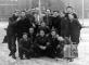 Skautu grupa Nīcas novada kopnieku kursu laikā Ansbahas nometnes laukumā (amerikāņu zonā). Zeme apkārt ir apsnigusi; fonā mūra ēka. Grupā redzami (pēc numuriem): 1. A. Grigors (kopnieku kursu vadītājs), 2. nezināms (vācu skautu vadītājs).