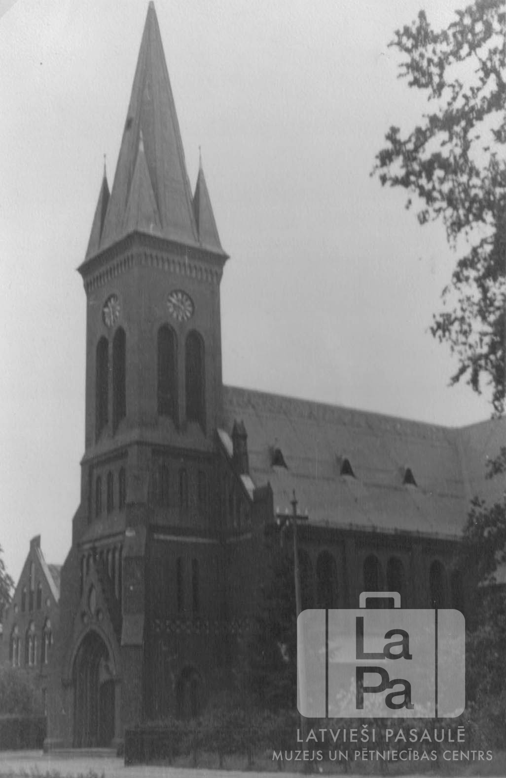 Evaņģēliski luteriskā baznīca Pinnebergā (angļu zonā), kur kopš 1945. gada latvieši noturēja dievkalpojumus. Ēka celta no ķieģeļiem, ar pulksteni tornī un spicu torņa smaili. Baznīcas labajā pusē ir žogs un apstādījumi.