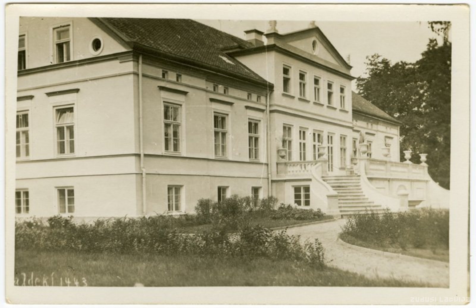 Fotogrāfējis K.Veinbergs. Muižas kungu māja uzcelta 1882. gadā, iespējams, pēc T.Zeilera projekta. Šī ēka vēsturē vairāk pazīstama kā Latvijas Republikas laikā pazīstamo uzņēmēju A. un M. Benjamiņu lauku paraugsaimniecības centrs. Barokālās uzejas kāpnes tapušas viņu saimniekošanas laikā. 1998. gadā atklāja piemiņas muzeju viņu mantiniekam, Latvijas pirmajam krāsu fotogrāfam, ķīmiķim - Jurim Benjamiņam