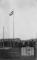 Cilvēki ir sapulcējušies uz Latvijas karoga uzvilkšanu Vēdeles nometnē (angļu zonā), iespējams, 18. novembrī. Divi zēni karogu velk mastā, aiz viņiem stāv skatītāji pusaplī. Karogs atrodas masta galā. Priekšplānā, uz zemes, ir veidojums, iespējams, no gaišiem akmeņiem. Fonā ir vienstāvu koka barakas.