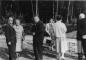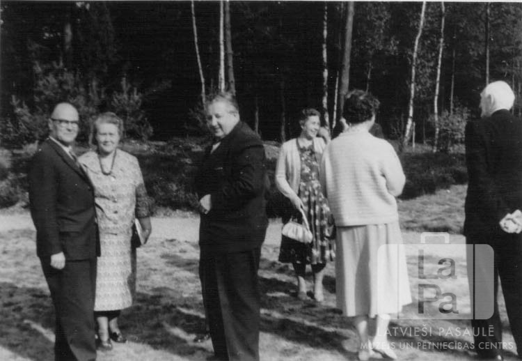 Cilvēku grupa mācītāju konferences laikā stāv meža malā, angļu zonā. Priekšplānā, no kreisās: R. Bērziņš (mācītājs), A. Pone (vikāre), E. Rozītis (mācītājs), ? Ķelle, Teodors Grīnbergs (arhibīskaps).