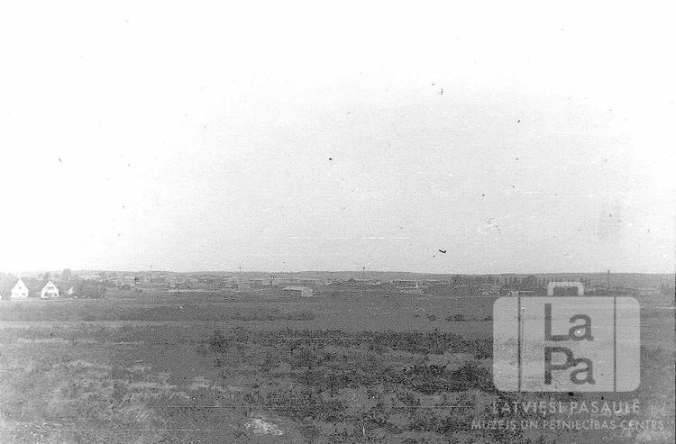 Plašs, klajš lauks pie Vēdeles nometnes (angļu zonā). Tālumā ir redzamas ēkas.